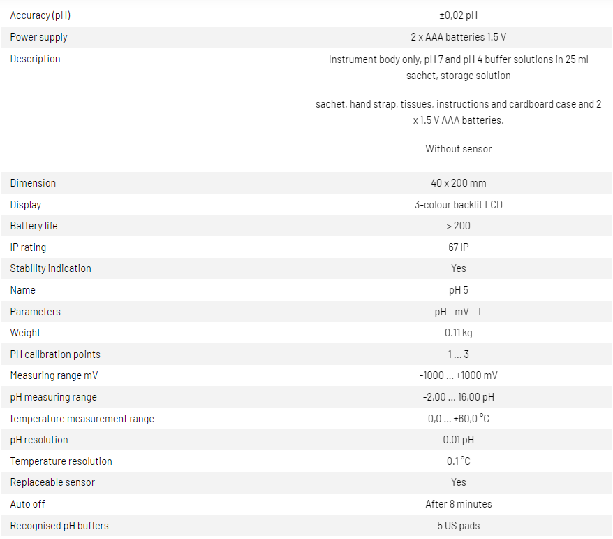 Auto power off. Automatic temperature compensation (0...60 °C).