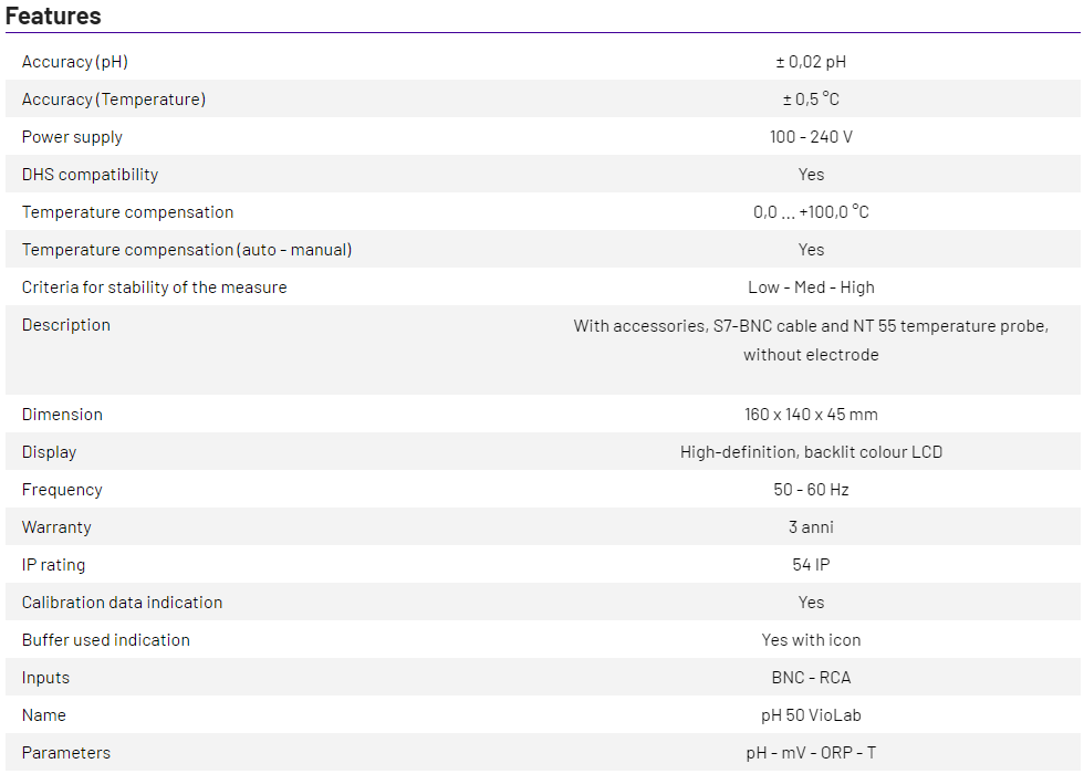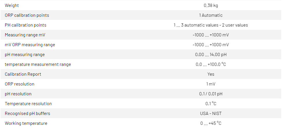 - Automatic pH calibration with USA and NIST buffers up to 3 points and 2 points defined by the user.