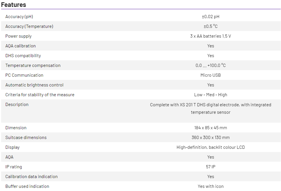 Complete with XS 201T DHS digital electrode, with built-in temperature sensor.