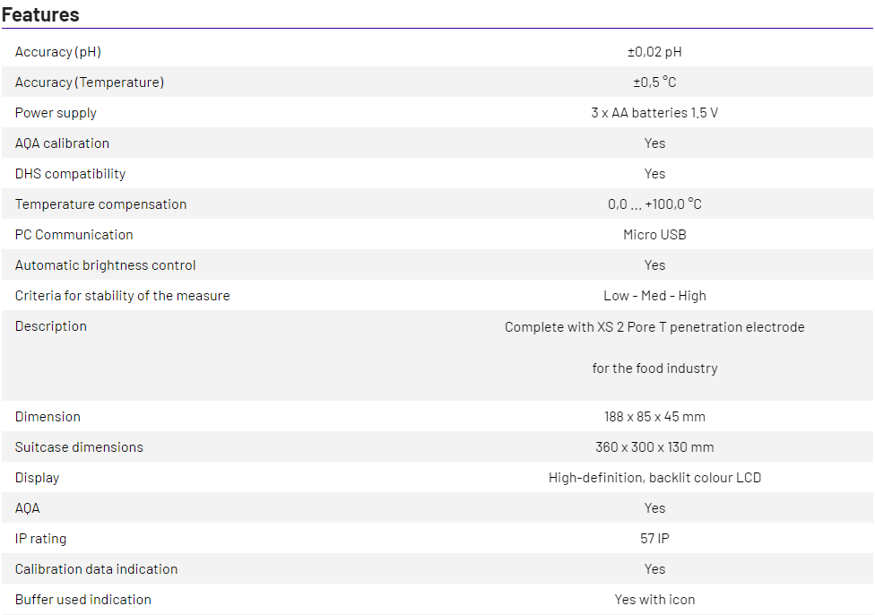 Complete with XS 2 Pore T penetration electrode, with built-in temperature sensor