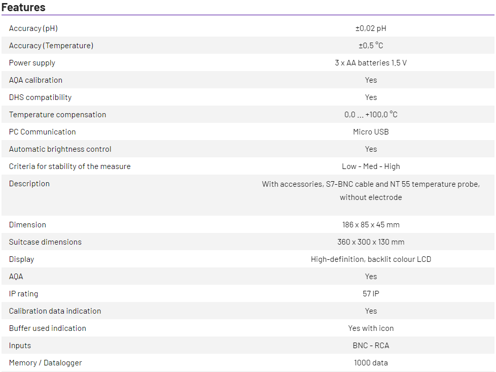 With accessories, S7-BNC cable, NT 55 temperature probe, without electrode.