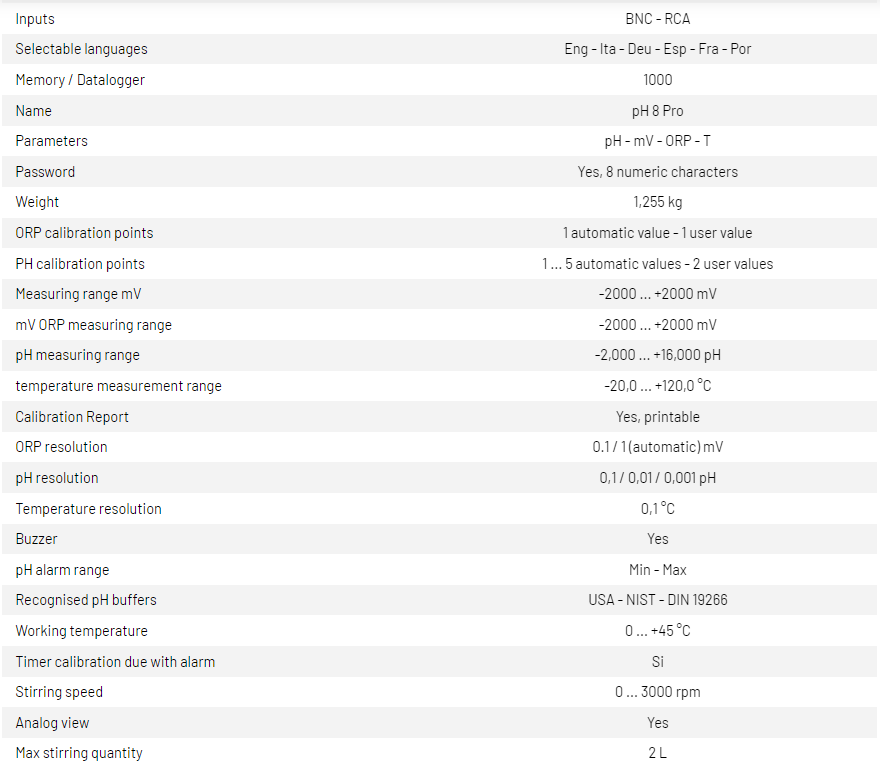 - Data logger up to 1000 data in GLP with possibility of sending to printer or PC.