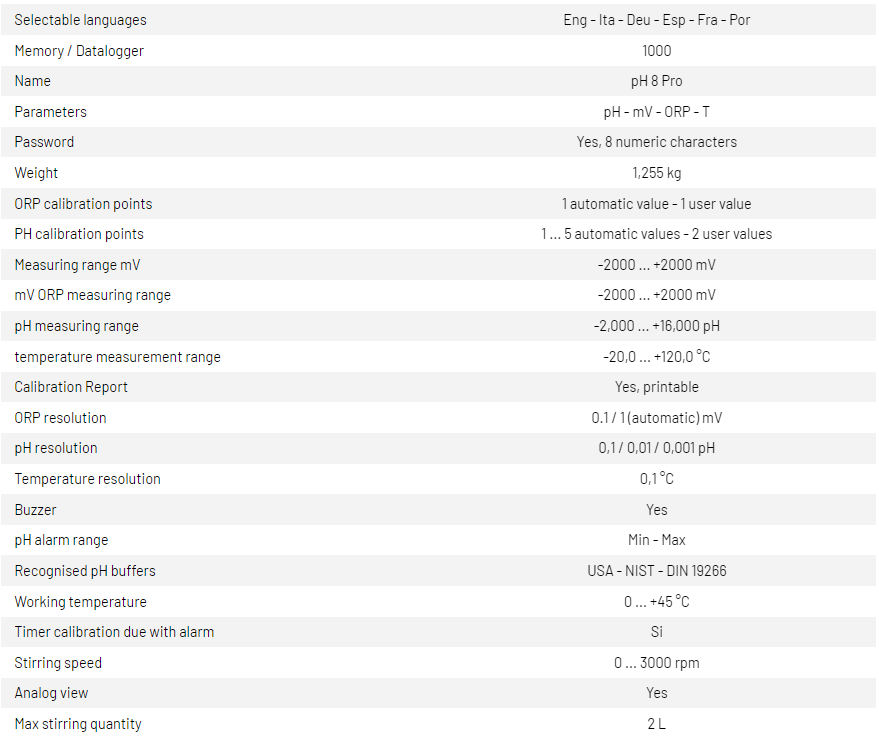- Data logger up to 1000 data in GLP with possibility of sending to printer or PC.
