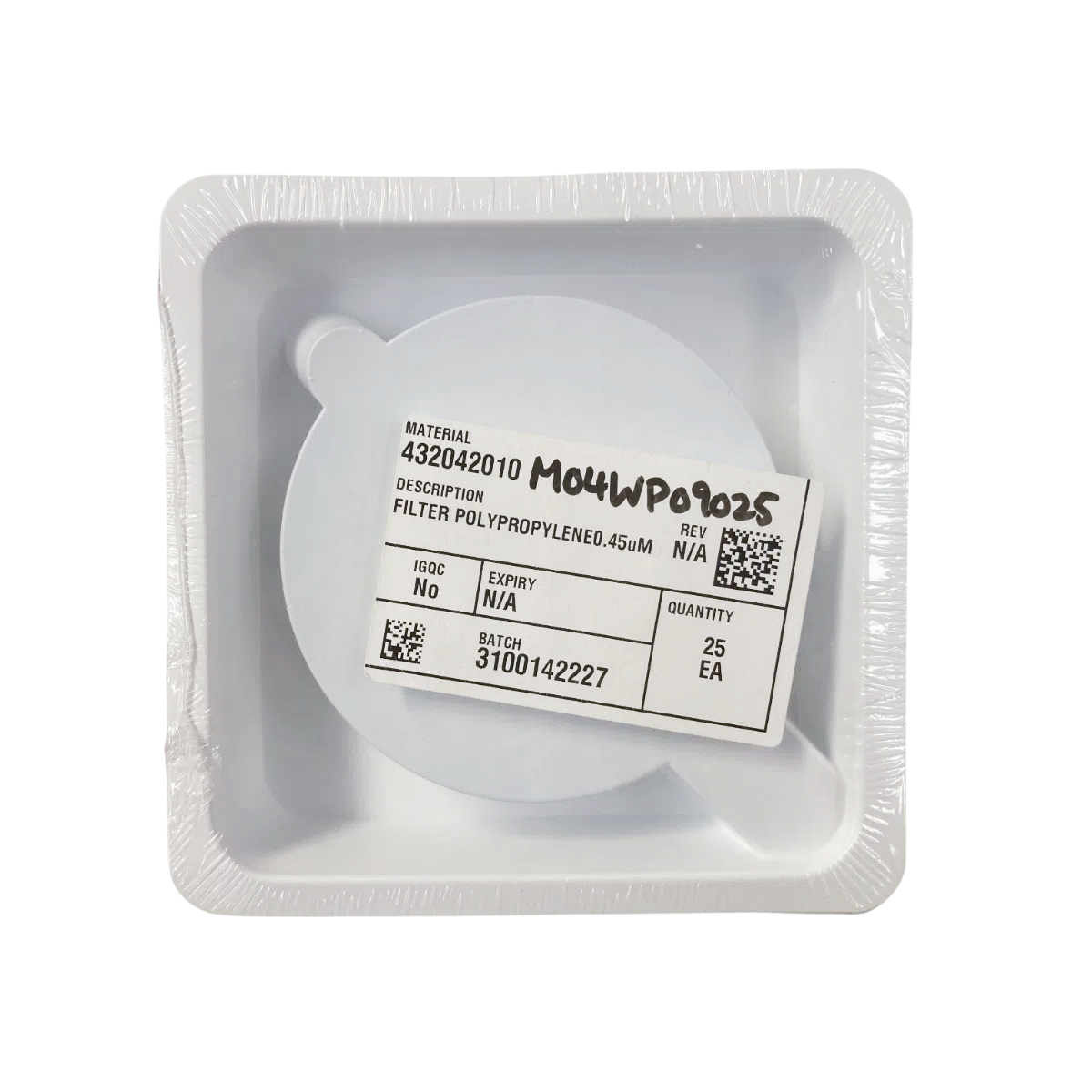 The polypropylene filter has extremely low extractable levels designed to provide accurate, consis tent analysis results for sensitive ion chromatography applications while prolonging column life. Polypropylene filters are the preferred filter membrane for HPLC applications where the detection levels are below 230nm. Polypropylene filters also exhibit negligible protein binding which is essential for maximum sample recovery of critical, small volume protein samples. MicroScience polypropylene filters are available in 0.1, 0.22 and 0.45 micron pore sizes in all disc diameters.