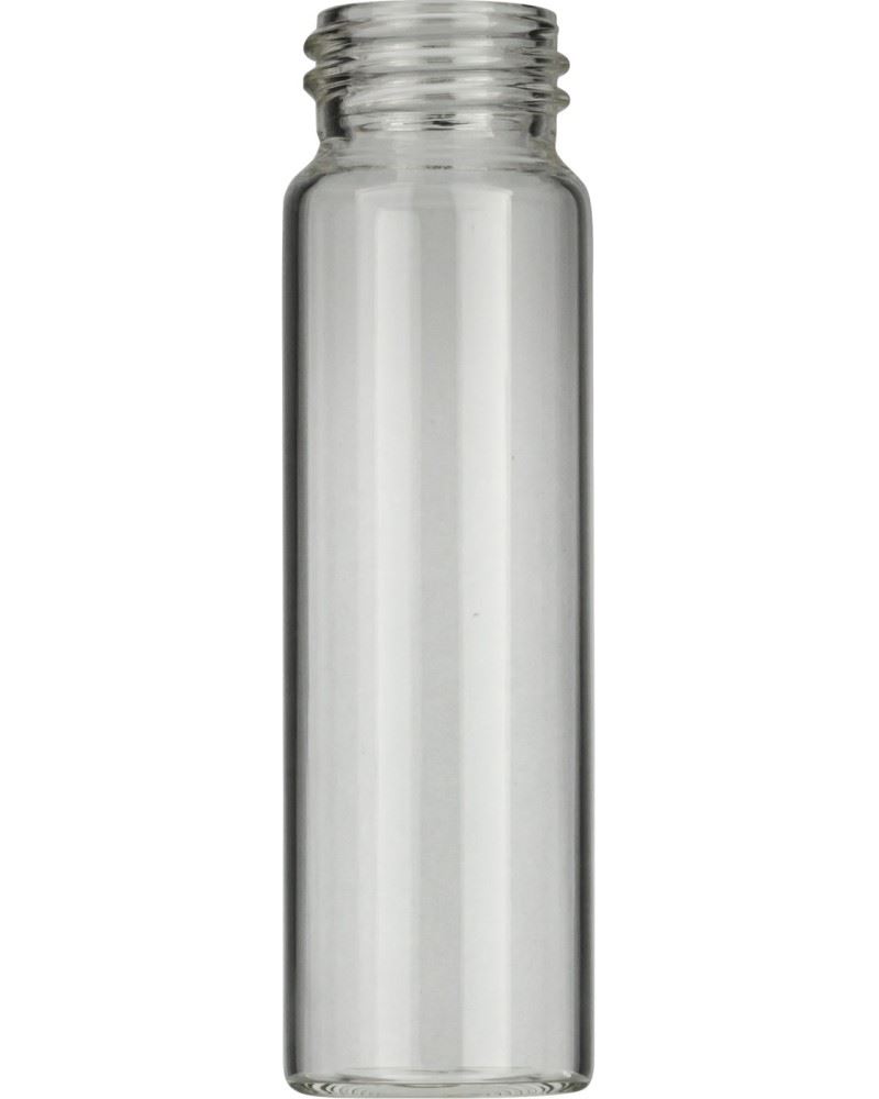 Pre-sealed vials 702023: 40 mL screw neck vial N 24, 27.5 x 95 mm, clear, flat bottom pre-screwed with 702058: N 24 PP bonded* screw cap, white, center hole, Silicone white / PTFE beige, 45° shore A, 3.2 mm