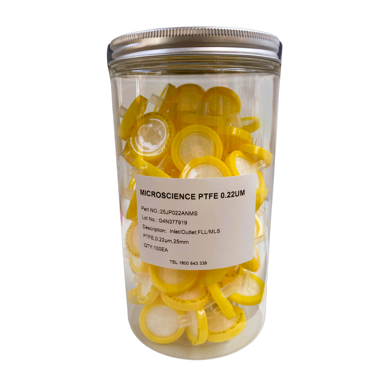 25mm PTFE Syringe Filter 0.22um, Non-sterile, PP housing, bx100, 25JP022ANMS