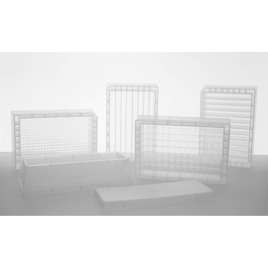 • V-shape Bottom, used with single or multi-channel Pipettes• Reusable, autoclavable• Special designed lid to prevent contamination• Clear graduation