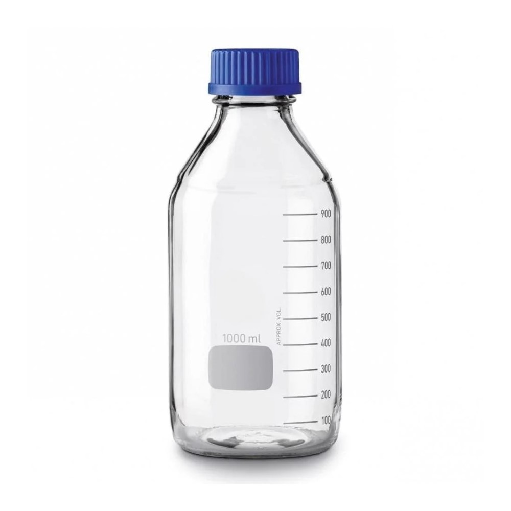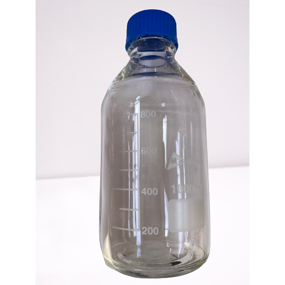 Lab Bottle Schott type clear Glass w/Blue GL45 Screw Lid 1L