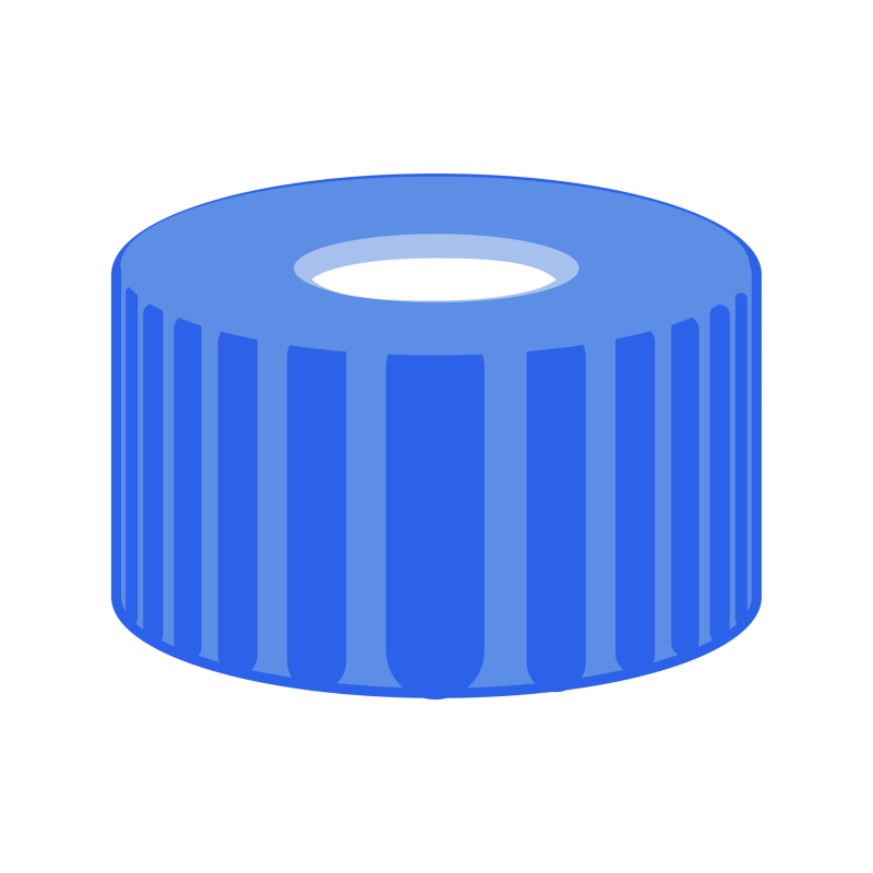 Screw closure N 9, PP, blue, hole, Sil. w./Polypropylene colorl, 1.0mm, pk100, 702406