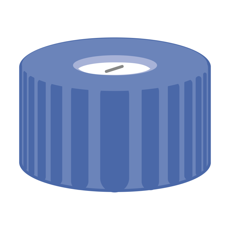 Closure is laminated with Polyimide (fluorine-free) instead of PTFE; thus suitable for analysis of fluorinated organic compounds (e.g. PFAS analysis). Slit serves as a penetration aid for thick and dull HPLC needles.