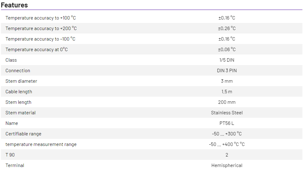 PT56L 1/5 DIN, For measurements in liquids, mm 200x3