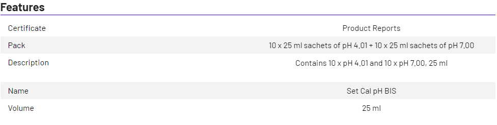 Set CAL pH BIS 1x20 SACHET 25ml (10 x pH 4.01/7.00) 51102203