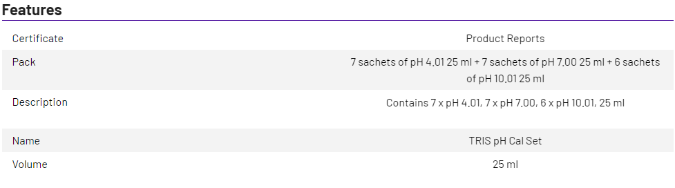 Set CAL pH TRIS 1x20 SACHET 25ml (7 x pH 4.01/7.00 + 6 x pH 10.01) 51102213