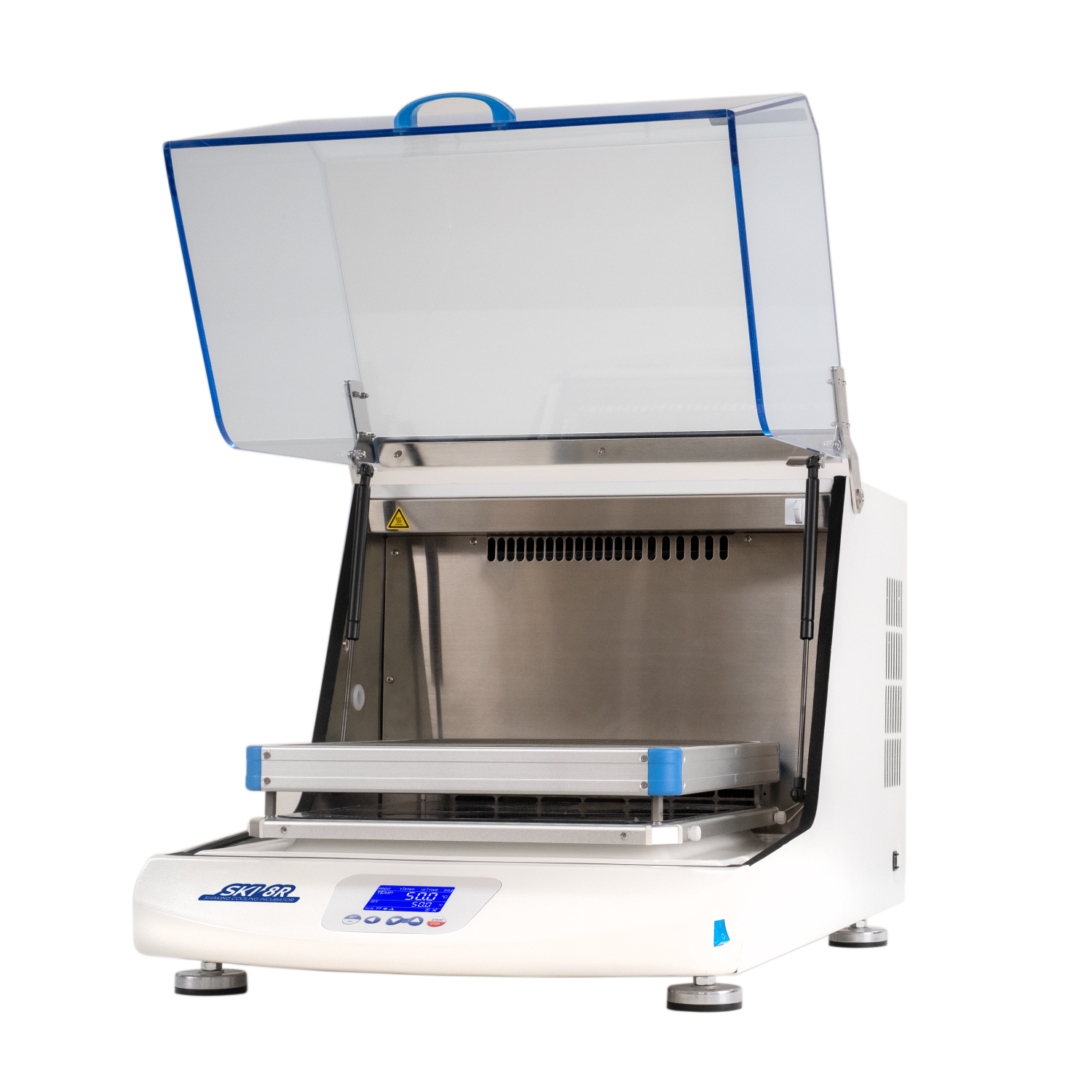ArgoLab SKI 8R is a bench top tool that combines agitation and thermostat/refrigeration functions in a single body, used to mix liquids and incubate organic crops.The microprocessor ensures constant and optimal control of the temperature inside the chamber.The heating pre-chamber (and cooling in the refrigerated model SKI 8-R) , together with the forced air circulation, ensure optimal temperature distribution throughout the working area.The thermostatic and stirring functions are completely independent, so the SKI can also be used as an agitator or incubator only.Large 8 mm thick plexiglass dome for optimal viewing of samples without heat loss, equipped with gas springs to facilitate opening and safety switch.Safety systems for over-temperature protection and adjustable fluid expansion safety thermostat.