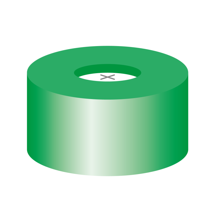 N 11 PE snap ring cap, green, center hole Silicone white/PTFE blue, cross-slit Hardness: 55° shore A Thickness: 1.0 mm pack of 100