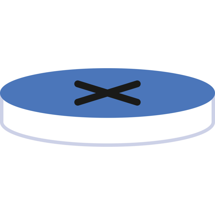 N 11 PE snap ring cap, yellow, center hole Silicone white/PTFE blue, cross-slit Hardness: 55° shore A Thickness: 1.0 mm pack of 100