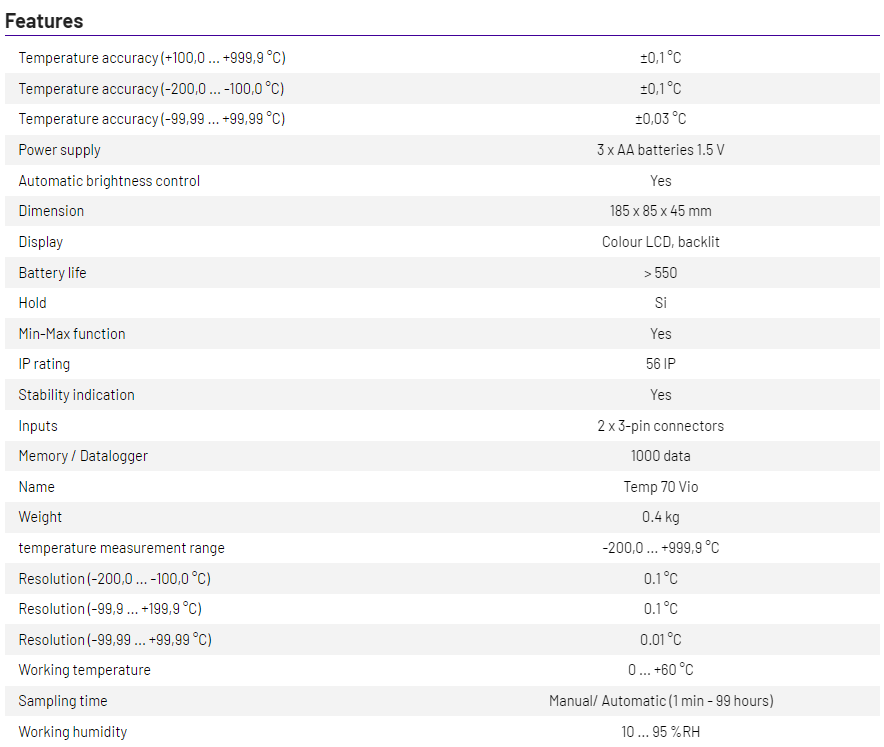XS TEMP 70 Pt 100 Vio double-channel including carry case, without Probe