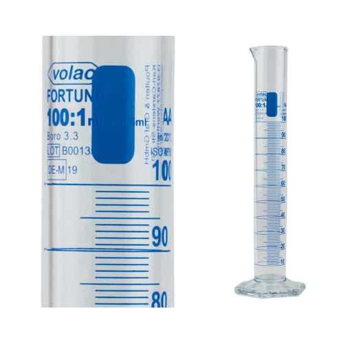 VOLAC FORTUNA® graduated and mixing cylinders (borosilicate glass 3.3) are made under the highest quality standards (EN ISO 4788). They are produced in Class B or Class A (conformity approved).