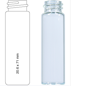 Clear, flat bottom 16 mL 20.6 x 71 mm
