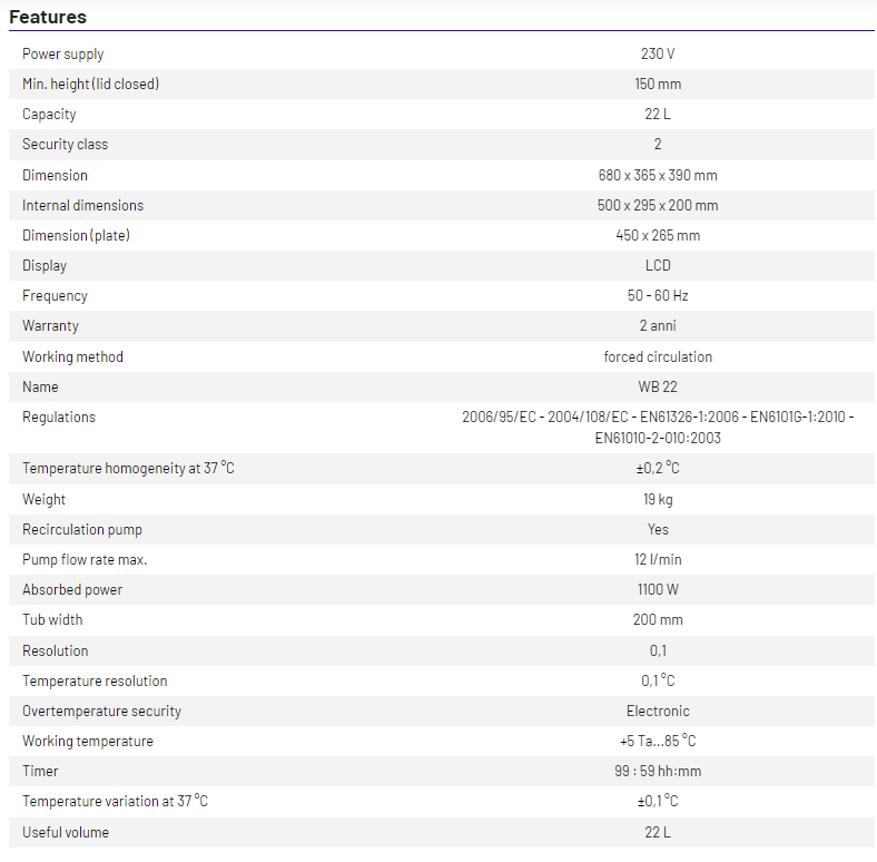 The WB 40 Pump model is also equipped with a recirculation pump for perfect temperature uniformity.