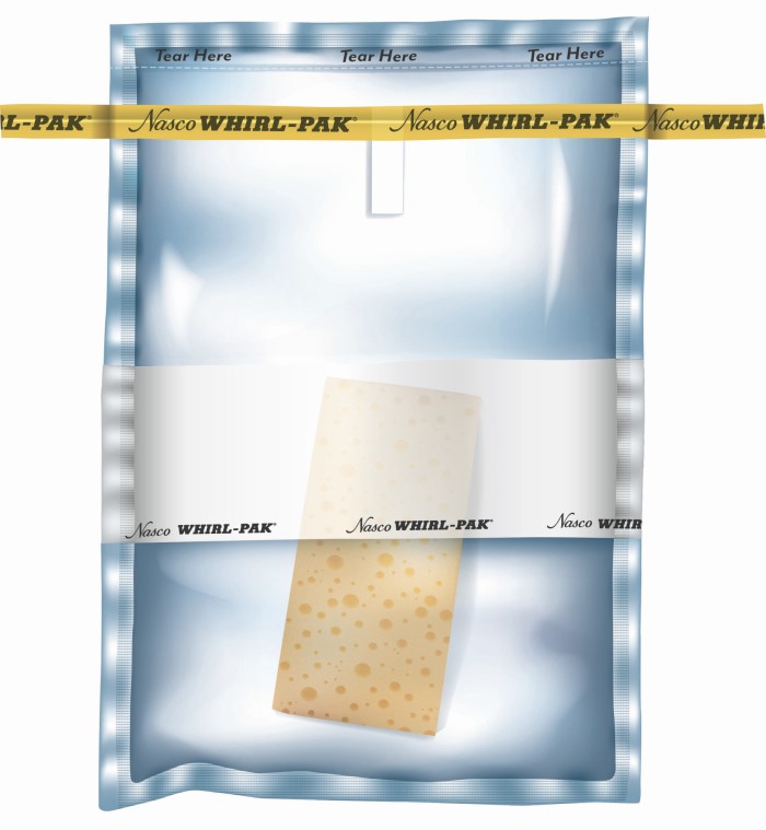 Whirl-Pak® Cellulose Speci-Sponge® bags are designed for environmental surface sampling of work areas, equipment, animal carcasses, and any other place where testing for Listeria, Salmonella, E.coli, coliforms, and other foodborne pathogens, or anthrax is required.