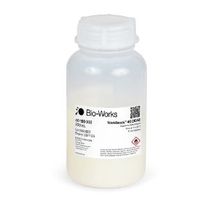 The WorkBeads™ 40 DEAE resin for ion exchange chromatography is designed for research and industrial purification of proteins, peptides and oligonucleotides, by utilizing the difference in their surface charge. WorkBeads 40 DEAE is a weak anion exchanger with tertiary amine ligands. This resin has the property of high-resolution separation while generating low backpressure allowing its use for both capture and polishing purification applications in standard bioprocess columns.
