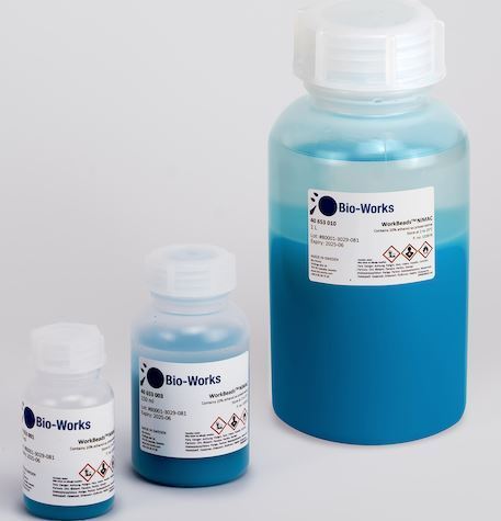 WorkBeadsTM NiMAC resin is precharged with very strongly bound nickel ions resulting in high resistance to reducing agents such as DTT and chelating substances such as EDTA. The high stability allows purification of proteins from sources such as eukaryotic cell extracts, that normally would cause significant nickel ion stripping from the resin. This reduces the need for sample pre-treatment. The resin provides high purity and binding capacity and the possibility to use high flow rates for minimized process time.