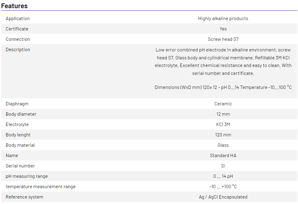 pH Electrode combined for minimal alkali error, S7 screw head.